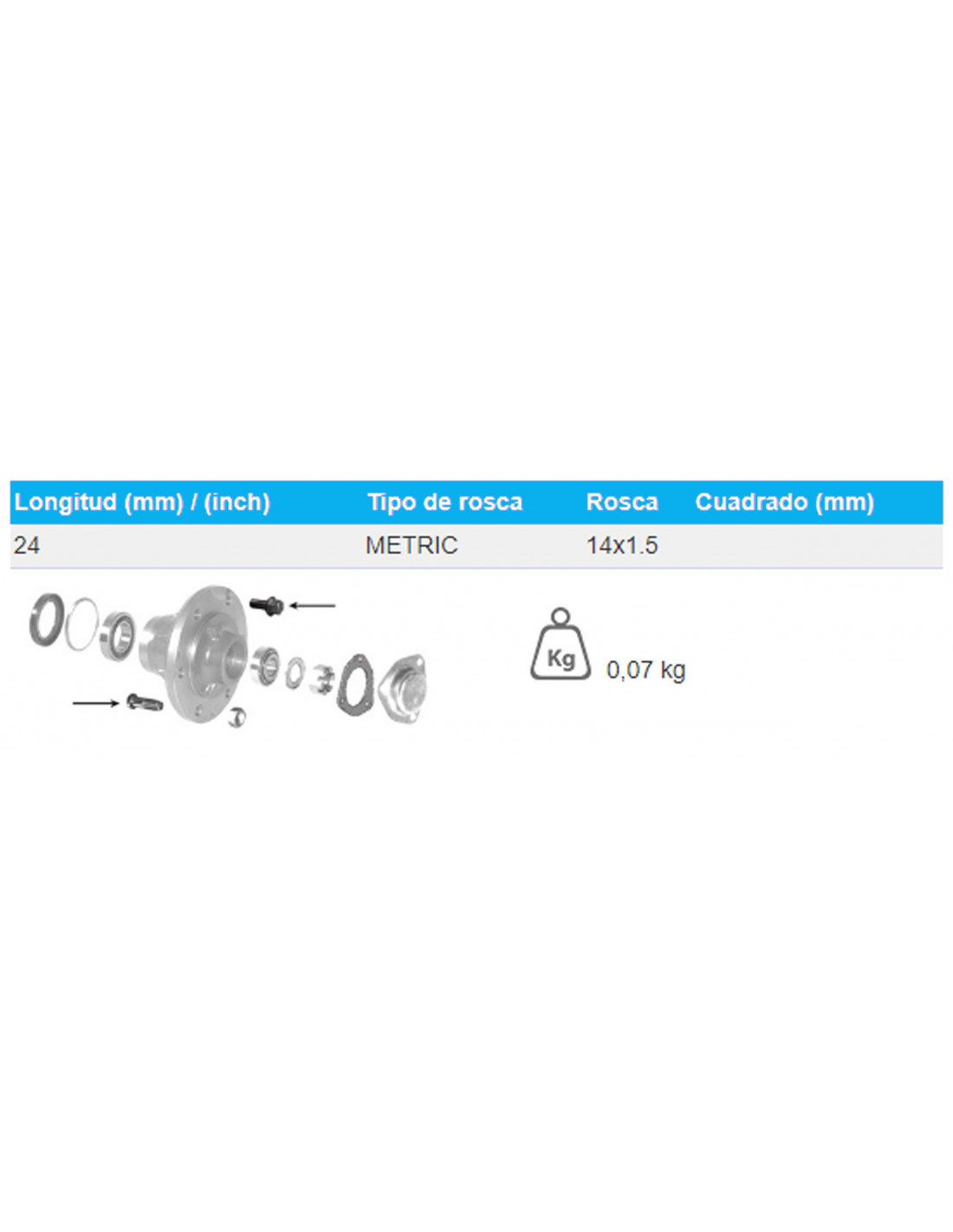 BULÓN DE RUEDAS M14 X 1.5 X 24 MM