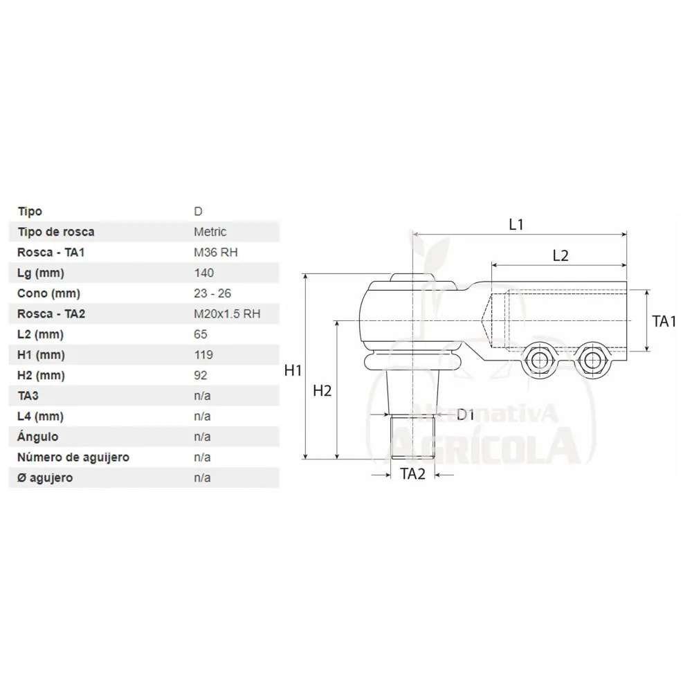 Rosca | TA1 - M36 RH TA2 - M20x1.5 RH |