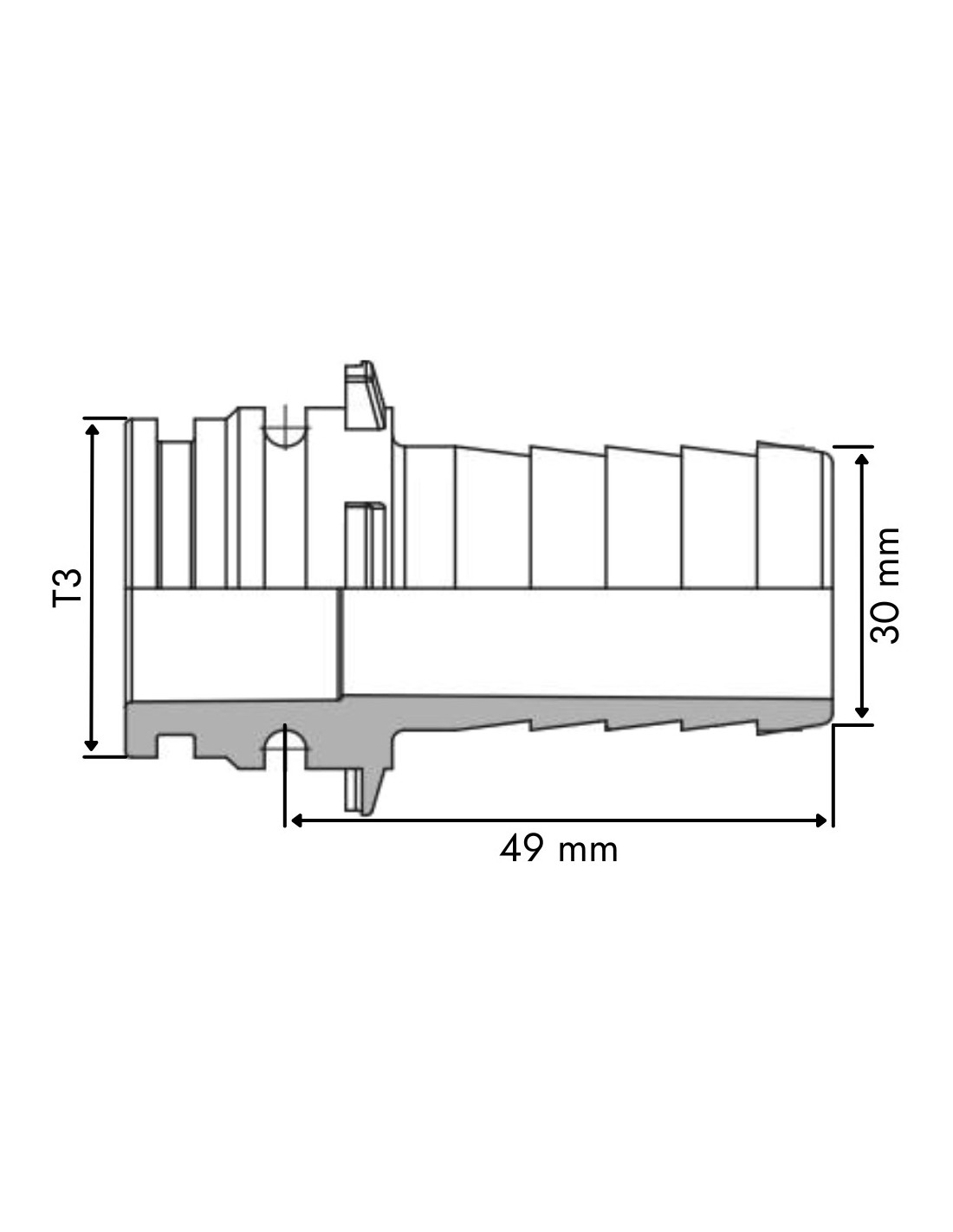 Espiga recta 30 mm con conexión modular macho T3 plástico