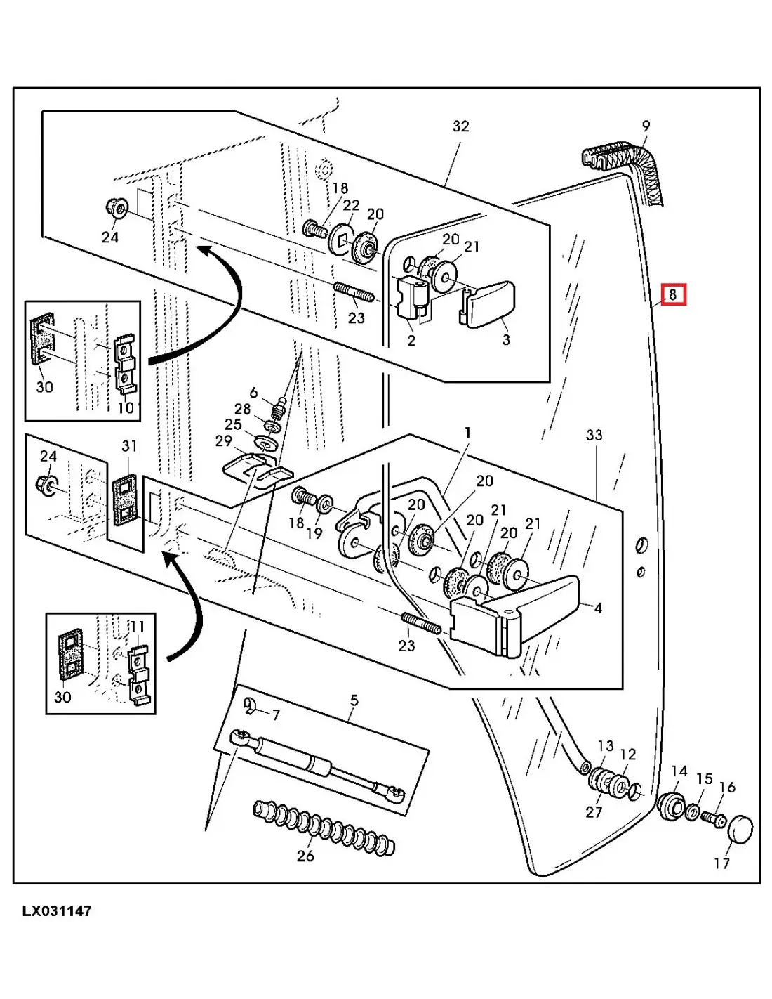 Cristal de puerta Derecha Tractor John Deere varios modelos