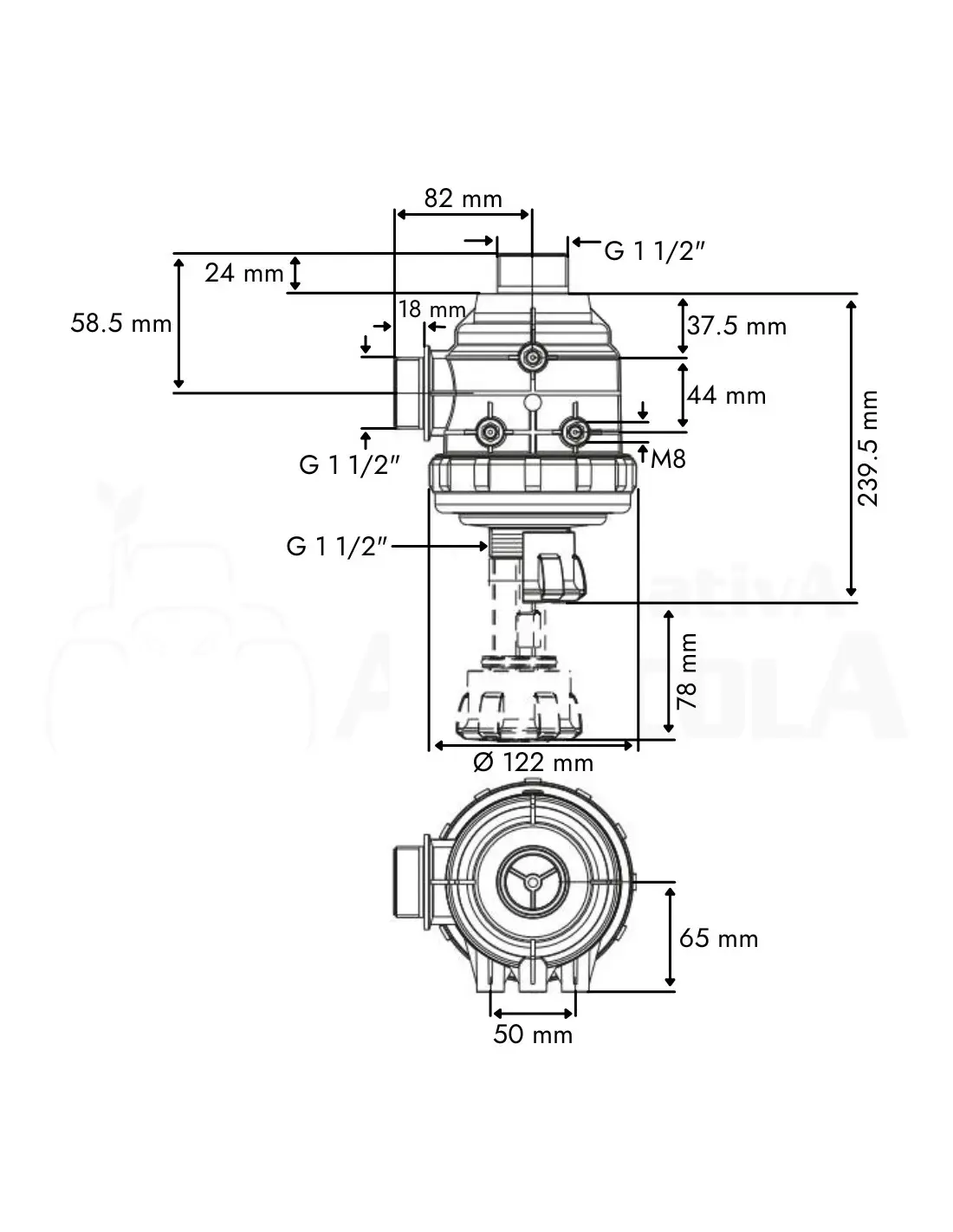 Filtro de aspiración con válvula M 1 1/2" x 24 mm 160 L/min