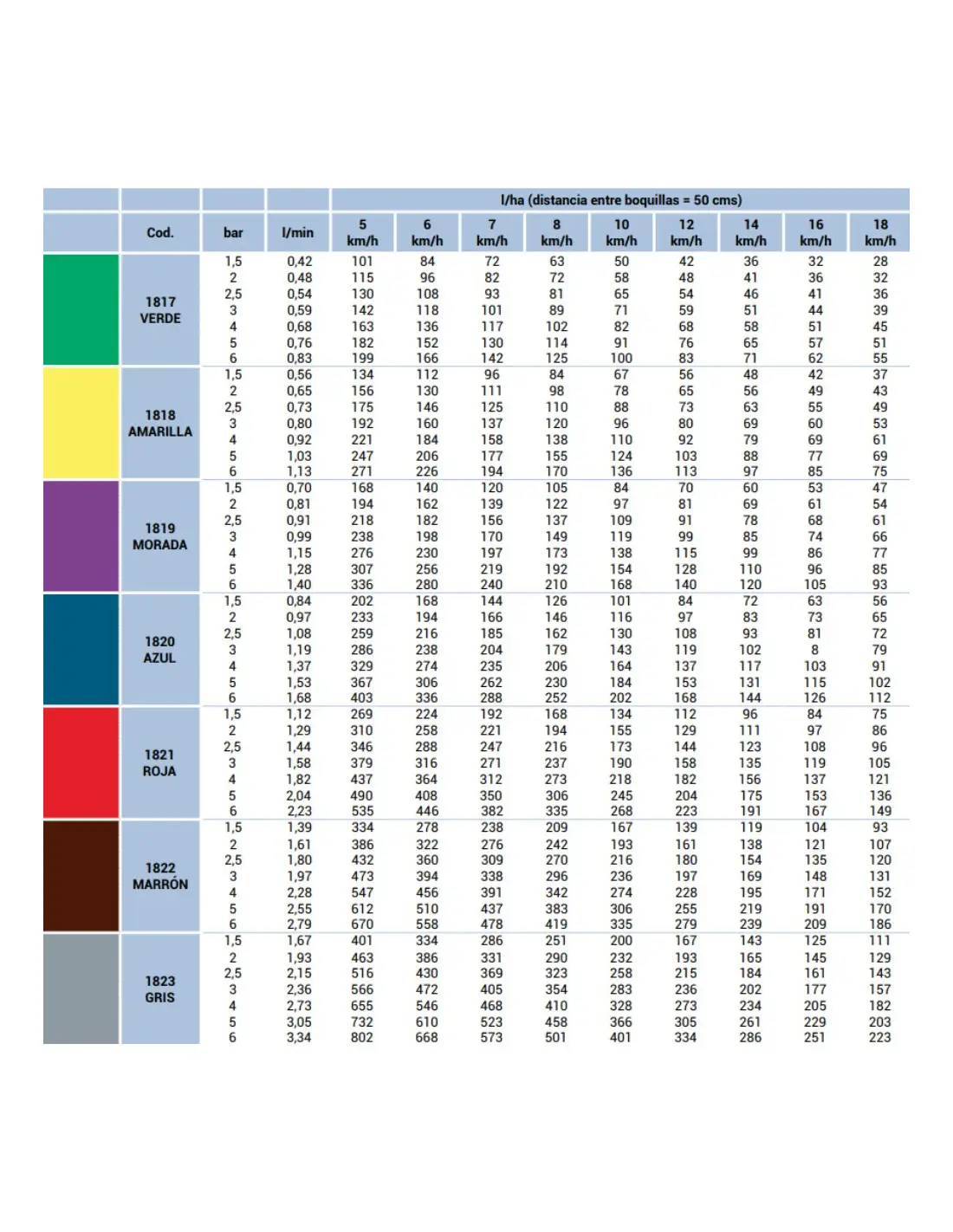 Hasta un 90% de reducción de la deriva dependiendo del tamaño de la boquilla, la presión.
