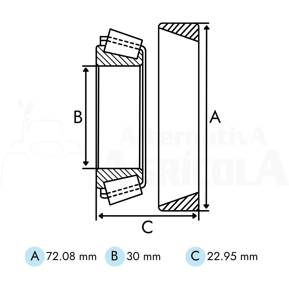 Rodamiento exterior Ø 30 x 72.08 x 22.95 mm Ford JD7443