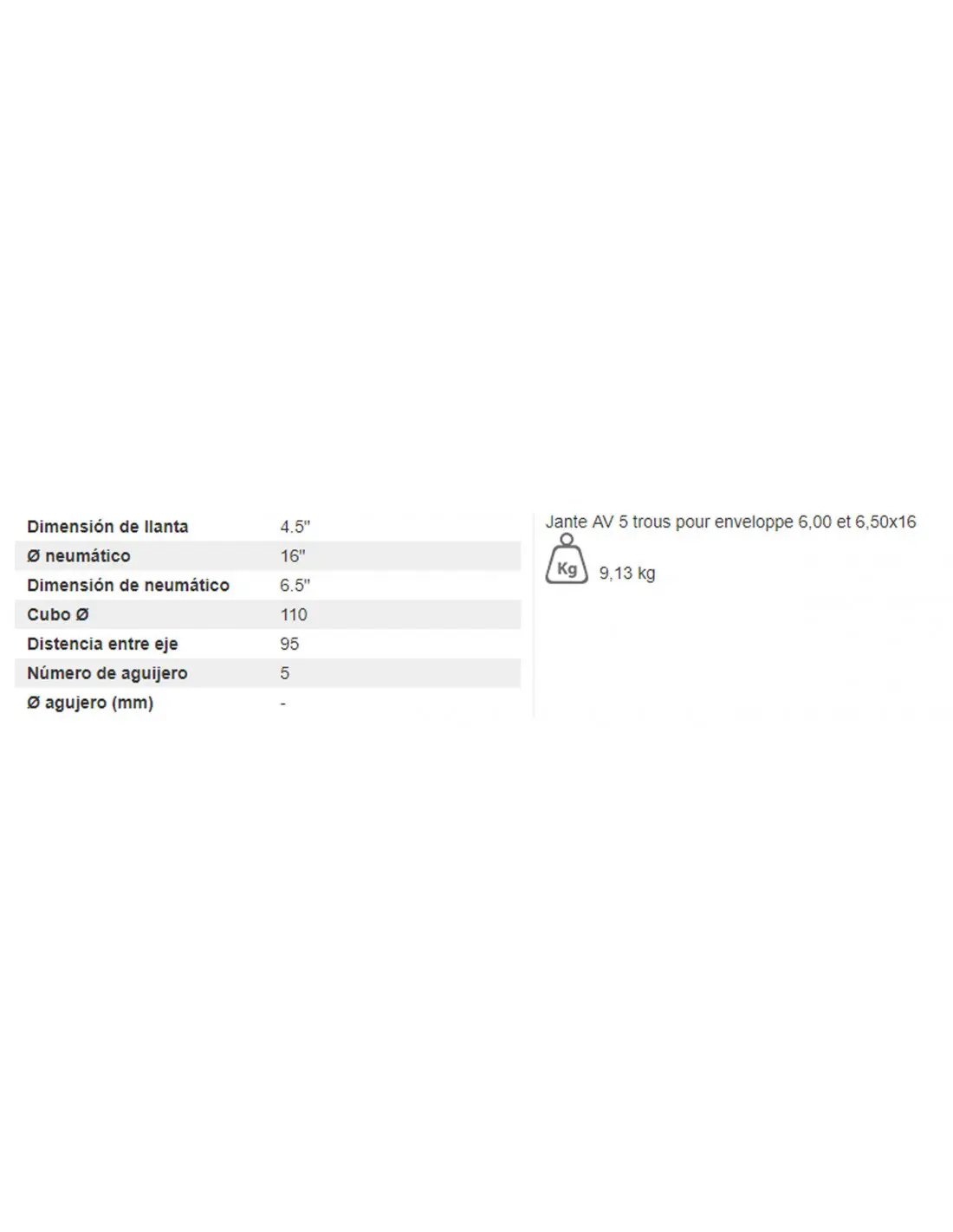- Dimensiones de llanta 4.5"