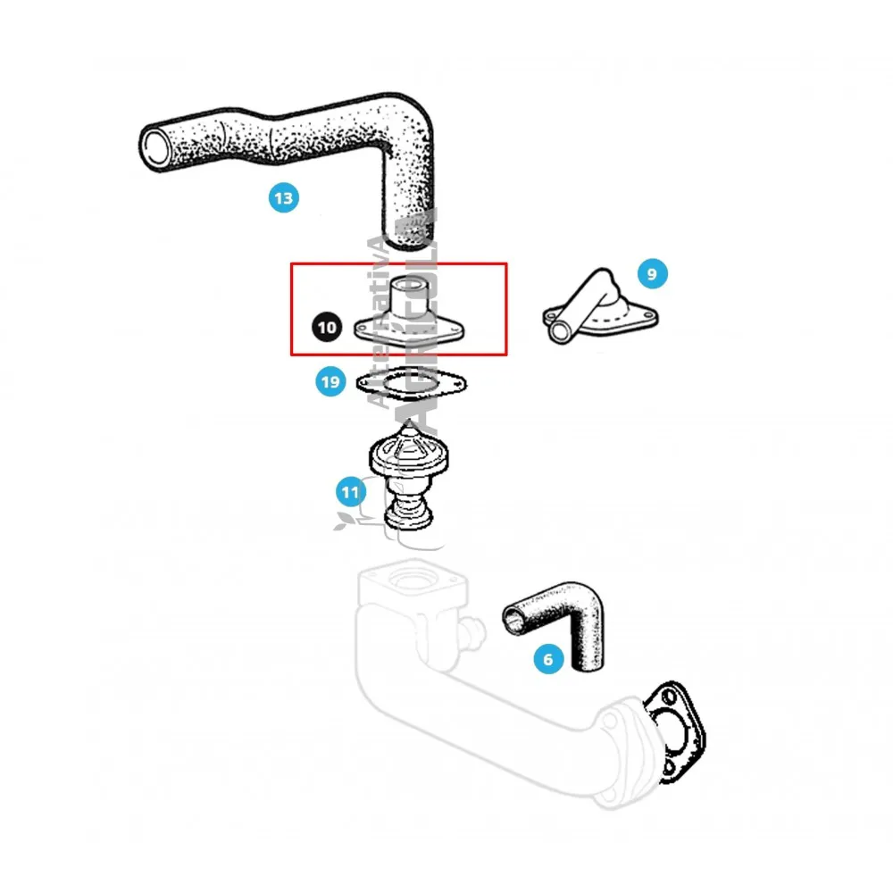 Tapa/Caja Termostato 45º para John Deere T20317
